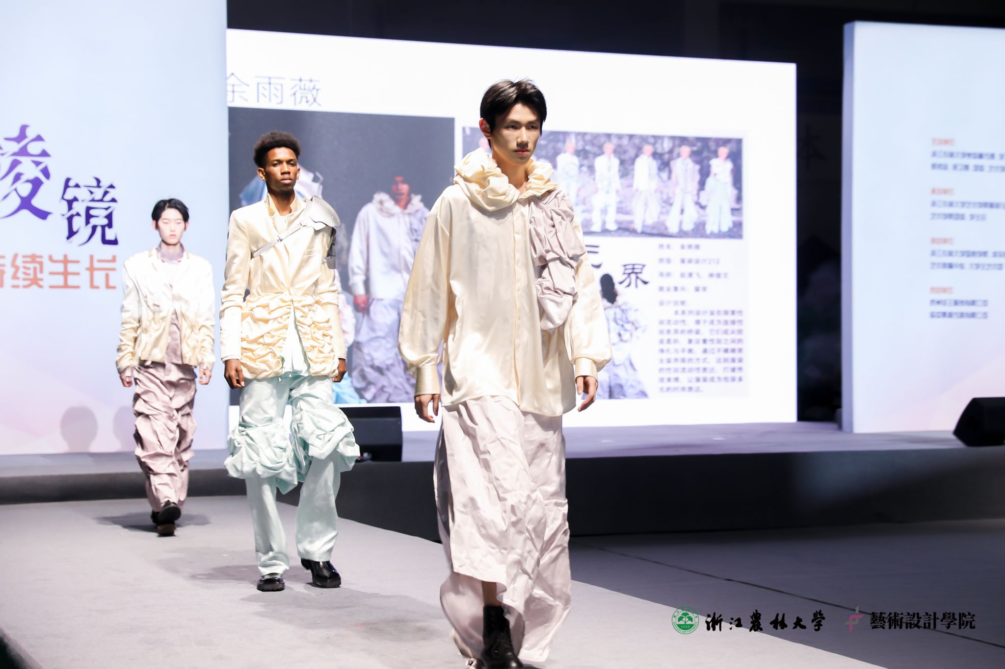 4月26日,浙江農林大學2025屆服裝與服飾設計專業畢業設計作品展演“棱鏡·持續生長”于校風雨操場重磅亮相。46位青年設計師攜100余件先鋒作品,以服裝為媒介,傳遞出對生態文明的深刻洞察,開啟一場關于可持續時尚的深度對話。