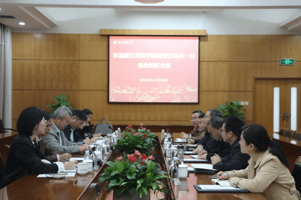 11月10日,浙江傳媒學(xué)院副校長(zhǎng)姚爭(zhēng)一行來(lái)校調(diào)研交流。副校長(zhǎng)胡祖吉陪同調(diào)研。