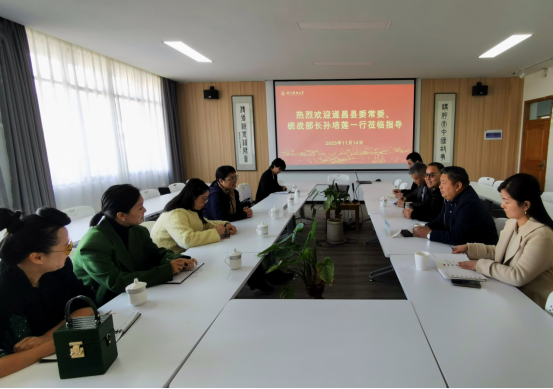 11月14日,遂昌縣委常委、統戰部長孫培蓮一行來校調研交流,副校長吳家勝陪同調研。遂昌舒閣藝家負責人、國教學院負責人和相關人員陪同調研并參加座談。