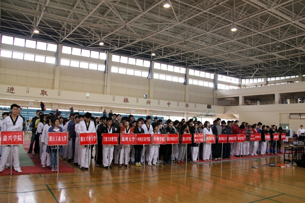 我校副校長張立欽,省教育廳體衛(wèi)處秘書長徐建津,浙江省大學(xué)生體育協(xié)會副秘書長、武術(shù)分會主席蘇亞平等有關(guān)領(lǐng)導(dǎo)和各代表隊(duì)領(lǐng)隊(duì)、教練員、裁判員、運(yùn)動員等400余人參加了開幕式。