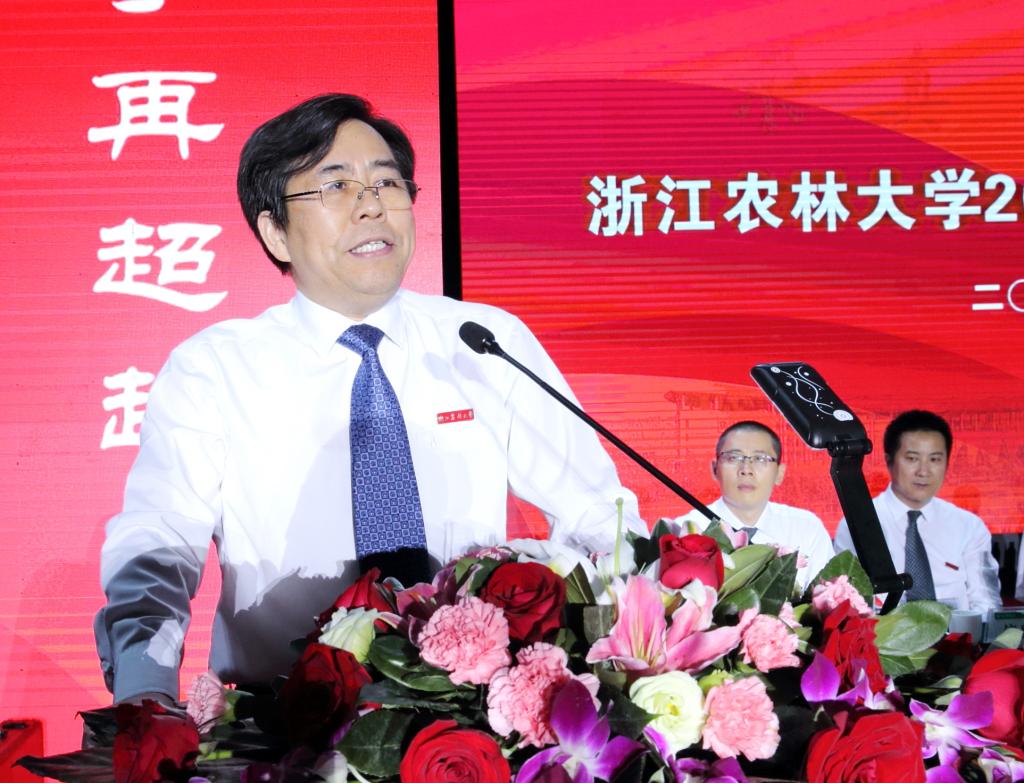 如果與世界諸多具有幾百年甚至上千年歷史的大學相比,農林大學與在座同學們一樣,是一個正值韶華、勃勃英發的青春少年。60年來,它一直像一位知心朋友一般,和每一屆學生一同成長、一起進步,與每一屆校友唇齒相依、共生共榮。還有40天時間,我們即將迎來農林大學60周年華誕。今天,你們作為農林大學歷史的續寫者而來;未來,你們還將作為農林大學精神的傳承者走向社會。同學們,請你們記住,你們站立的地方,是幾代浙農林人為之自信、為之奮斗、為之驕傲的地方。我相信,你們一定能夠像農林大學的許多優秀校友一樣,在這里成長為一個充滿自信的奮斗者!我也特別愿意相信,故事里常常寫到的,那些有志于征服星辰大海的舵手,未來一定會涌現在你們的中間!