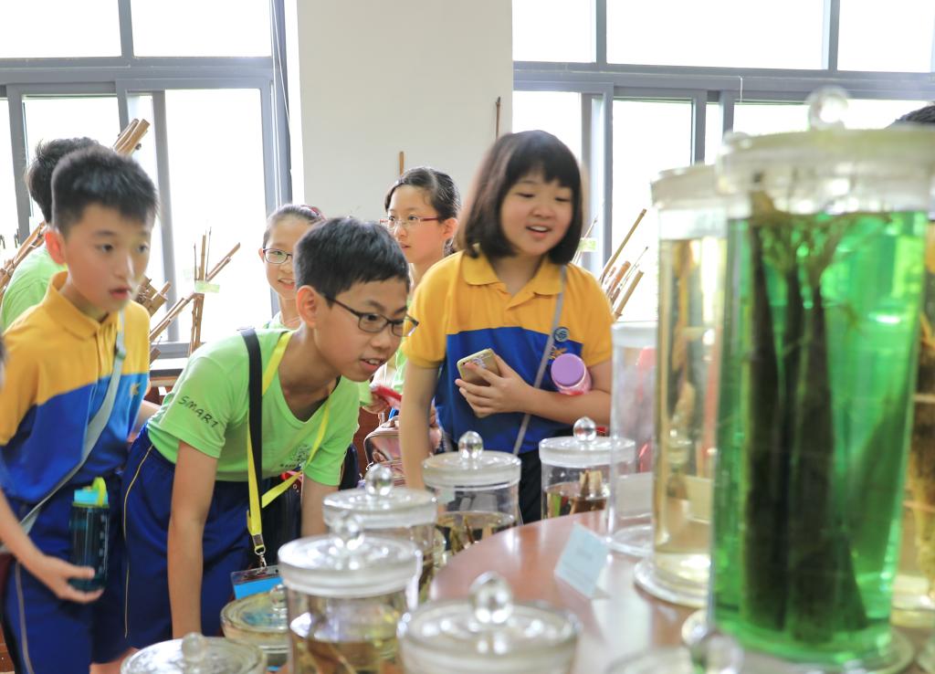 小學生們來到智能實驗樓,聽取國家重點實驗室相關情況的介紹,包括發展歷程、研究內容、科研團隊、科技成果等。接著,小學生們跟隨講解員先后來到森林文化館、植物組培室、翠竹園,很多小朋友是第一次近距離看到山核桃、香榧、毛竹、南方紅豆杉、光皮樺等實物和豐富多彩的生態科技文化產品,驚奇不已。香港小學生了解到植物從“試管嬰兒”到“開花結果”的生長發育過程,直觀感受了實驗室濃厚的科學氛圍。在翠竹園,看到剛剛出土的竹筍,看到形態迥異的竹種,小學生們非常興奮,視野得到擴展。