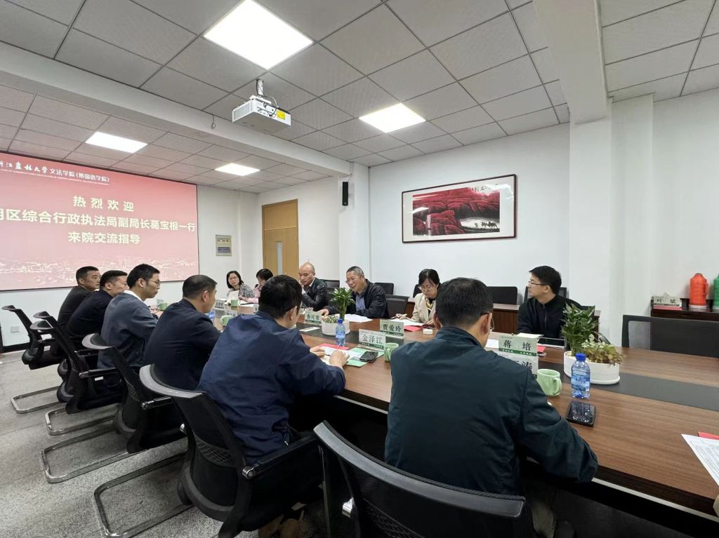 11月1日,西湖區綜合行政執法局副局長葛寶根一行到文法學院交流。文法學院院長魯可榮及有關學科負責人參加交流。