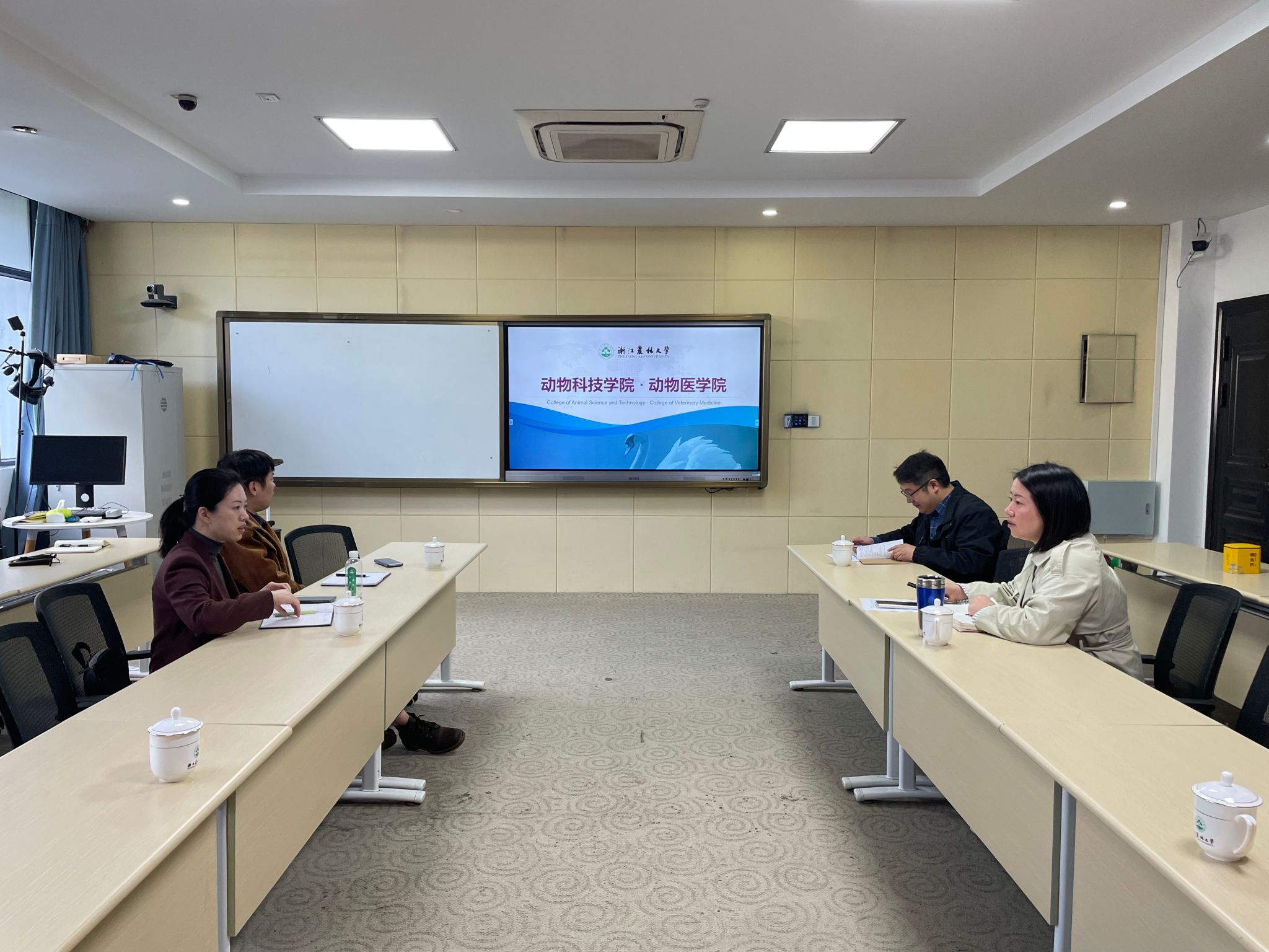 11月11日,浙江青少年事務所副所長鮑倩倩一行到動科動醫學院交流,洽談合作事宜。