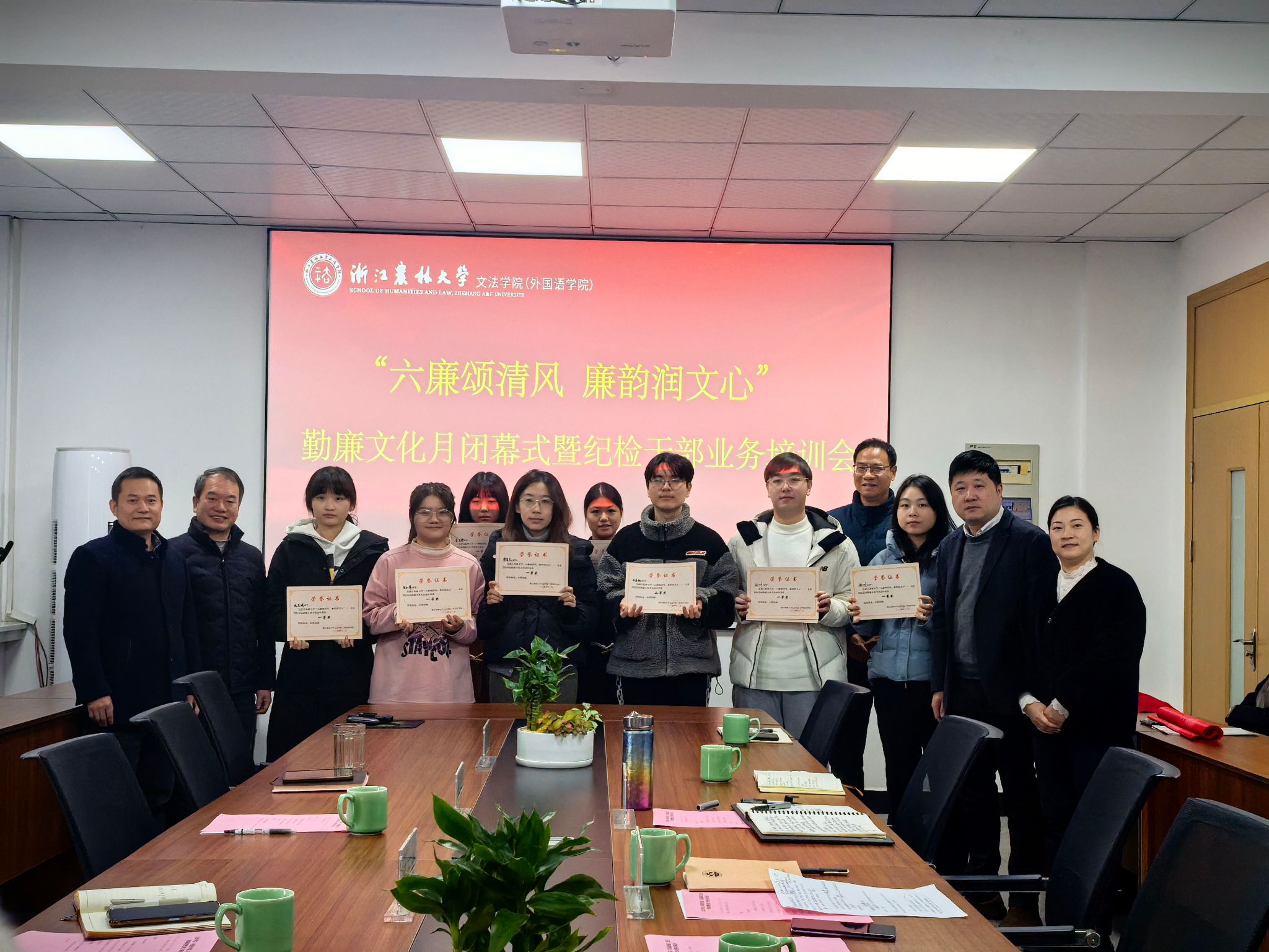 12月27日,文法學院舉行首屆勤廉文化月閉幕式暨紀檢干部業務培訓。校審計處、校紀檢監察室、馬克思主義學院、文法學院相關負責人,以及文法學院全體紀委委員、師生黨員代表參加活動。