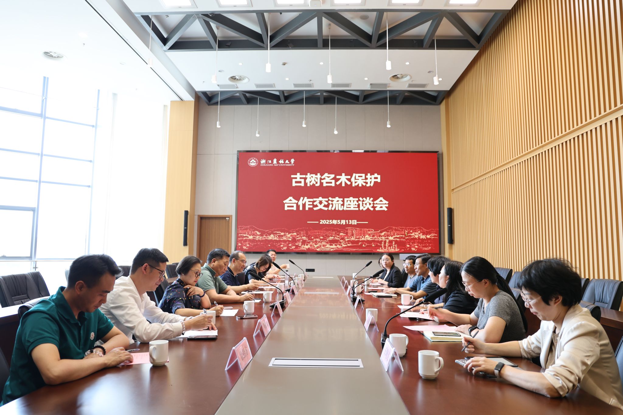 5月13日,紅旗出版社社長、總編輯蔡李章,浙江省林業局森防總站站長章濱森一行到林生院調研古樹名木保護工作,東之原野(杭州)農業科技有限公司董事長陳才榮、杭州諾森蛋白科教有限公司董事長郝夢姝參加座談會,會議由林生院黨委書記鄭炳松主持。