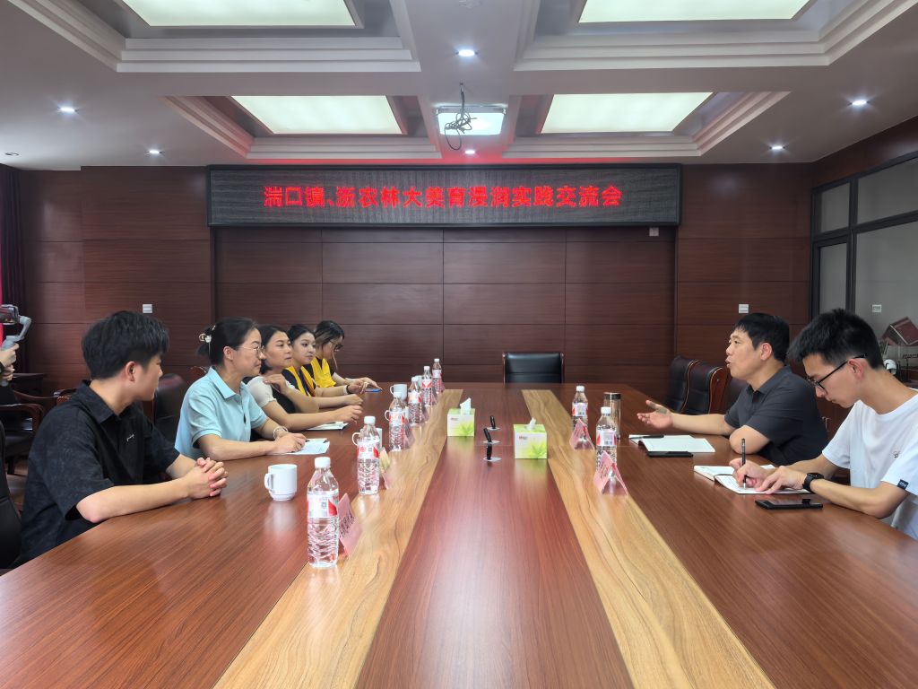鄭宇對黃曉芳一行的到來表示歡迎,對“藝術+”彩虹課堂大學生暑期社會實踐團隊的實踐成效表示肯定,重點介紹了湍口鎮在非遺文化傳承保護、文旅產業等方面的發展情況,希望“藝術+”彩虹課堂大學生暑期社會實踐團隊能夠在湍口鎮持續開展美育浸潤實踐活動。學院也表示期待與湍口鎮在黨建聯建、美麗鄉村建設、社會實踐、非遺文化傳承、文旅宣傳等方面能夠有更加深入的合作。