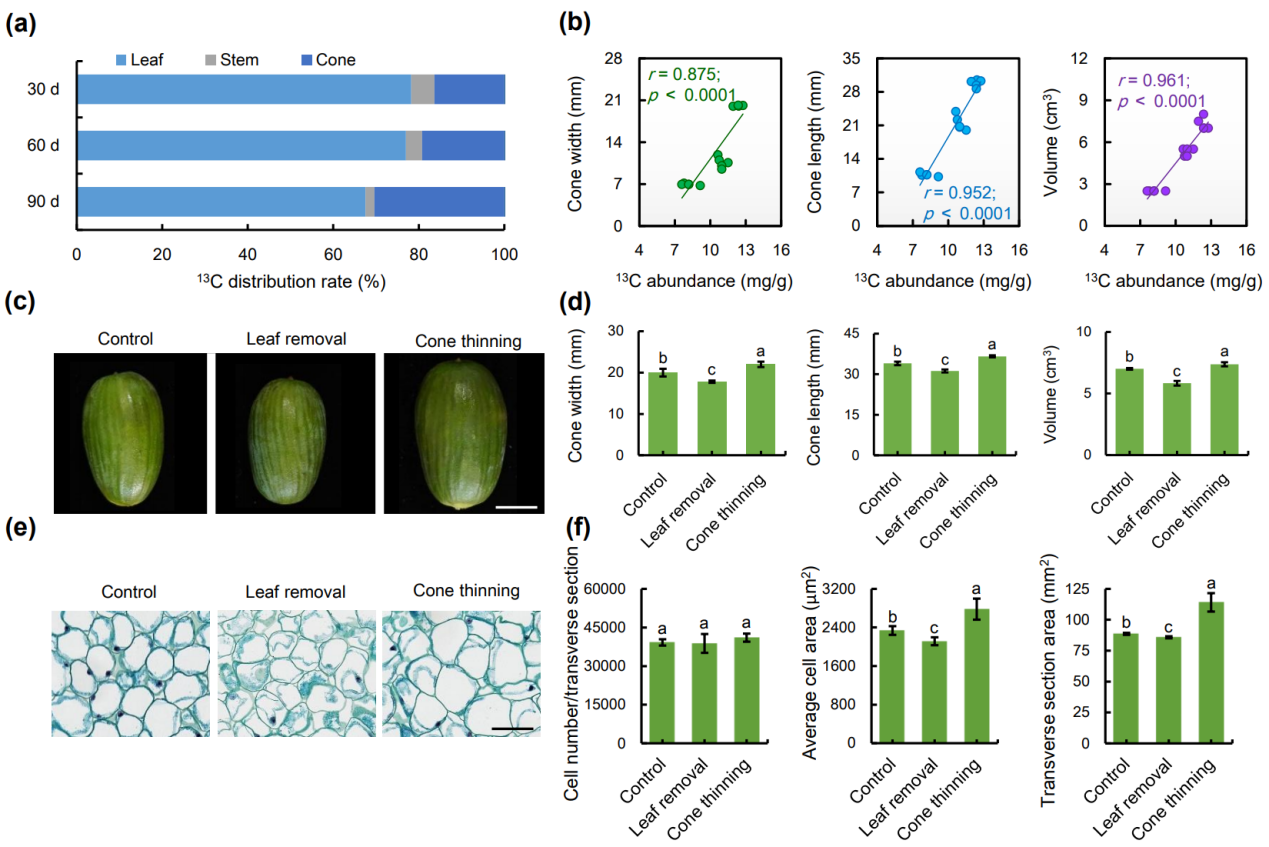 與被子植物不同,香榧等裸子植物具有復雜而原始的繁殖結構—球果(cone),且具有較長的發育周期。受精后,球果或者進入休眠狀態或者迅速膨大,這一膨大過程對裸子植物種子生產、繁殖和產量形成至關重要。然而,關于受精后球果膨大機制一直是未解之謎。