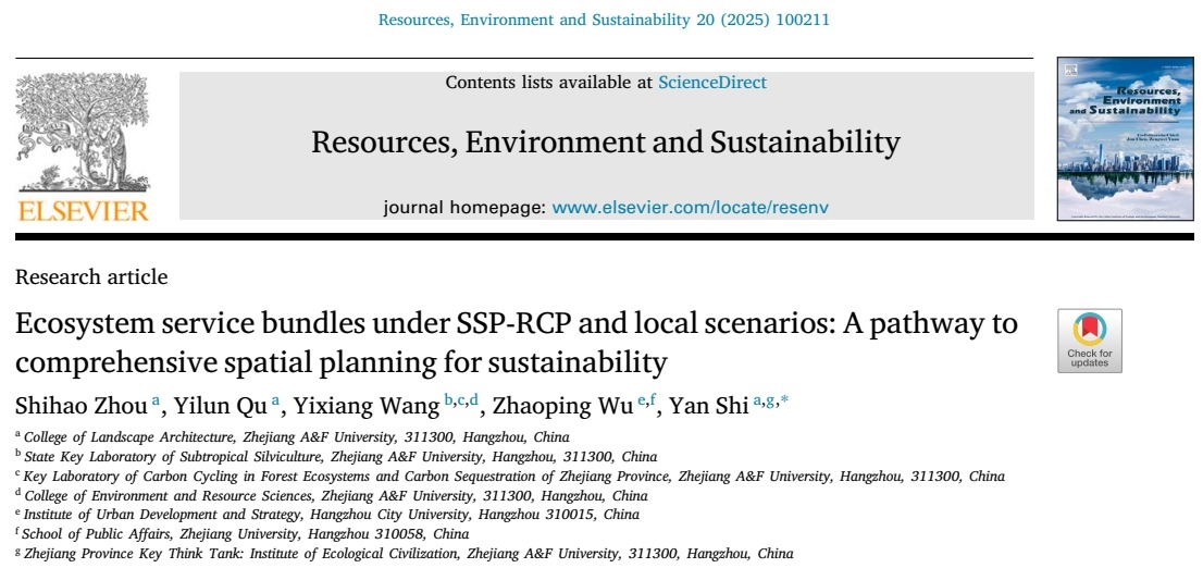 園林學(xué)院碩士研究生在《Resources, Environment and Sustainability》發(fā)表學(xué)術(shù)論文